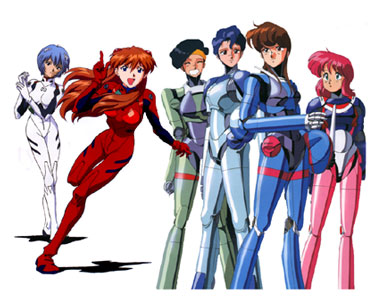 Tokyo-3: Two cute girls in skintight suits inside fighting mecha machines