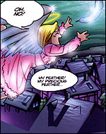 The artwork in the series is very enchanting. The use of "normal" character designs and super deformed art lend itself well to the comedic nature of the story. Another great positive point is the use of color in the series. Going contrary to the typical black and white art formula in a manga series creates a rich visual presentation that helps keep your attention moving forward with the story. The vibrant colors help combat the one nitpick I've found with the series. There are times when the dialog can happen so fast that it's a bit difficult to keep track of some of the conversations, but the visuals keep things going even in the times of confusion. The story for Angel's Wing is very simple, but engaging enough to be something that a wide variety of fans will enjoy.