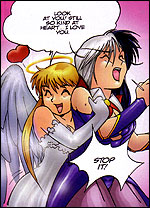 The topic for this issue's @manga! offering is something from an unlikely place for PLEX International Design. Typically known for the planning, design, development and production of character toys for popular series like Power Rangers, Digimon and Gundam, PLEX takes themselves into new waters with the creation of something different, a manga series. In their first go-round, we're treated to a fun, fast-paced romp from heaven to hell and everything in between from the mind of Tetsuya Aoki in Angel's Wing.