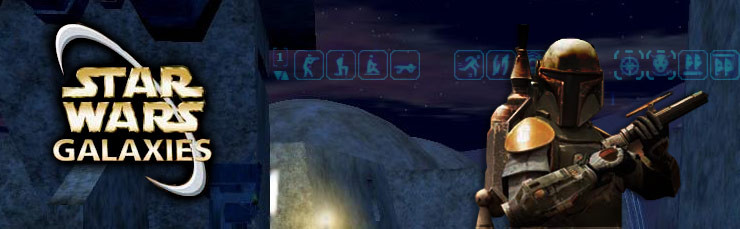 | by Michael Moore A long time ago in a galaxy far far away... Well more like two months ago in this galaxy, Star Wars Galaxies was released. Currently Galaxies has over 275,000 registered users, making it second largest subscription online game in the US, behind Everquest. Galaxies starts off by having you pick a server, then you pick a name which cant be the same as anyone else on the server even if the surname is different (thats just a little peeve of mine.) After that you get to pick your characters race. Each race has its own strengths and weaknesses. For example Wookiees cant wear armor and can only take in Shyriiwook language, but they are powerful hand-to-hand fighters due to their size, and also start off with a lot of hit points. Then you get to pick a starting profession, there are five starting profession (marksman, artisan, entertainer, scout, and brawler.) Each job has its own attributes that affect your stats, just like your race did. As you play the game you get experience which you use towards learning new skills. You can learn this skill from NPC trainers who will charge you a fee, or from other players. Once you learn a certain skill or skills, you can learn a higher profession. Like if you learn one-handed sword specialist, you can then become a fencer. These higher professions have their own skill trees that you can follow like the starting professions did. The difference is that these professions are the ones that will distinguish your character and also make them a lot better or stronger. After youve completed your characters appearance and picked a starting job youll get a little walk through tutorial of the controls of the game, and how to do certain things. The tutorial is very helpful, especially for those of you like me who dont read the manual. The main part of the tutorial is teaching you the games circle menu system. The basic premise of it is that when you click and hold on an NPC, another player, or any other object, a circle will appear around them and various buttons will appear on the circle. These buttons being different actions you can do involving the object or person. Things like attack, converse, sit, pick up, etc. The menu is pretty simple, and a nice little feature, but is kind of a nuisance when youre trying to use it on a moving target, like wild animals and such. So you should learn the keyboard controls since its a lot faster to target and get things done through the keyboard then it is through the circle menu. So now you have a character, a server, and you mastered the menus, now what? Well thats up to you. The game is completely wide open. You go hang out in the cantina and listen to musicians or be one, you can join a guild, or make your own. There are endless possibilities really. Ok here is the important part of this review, Galaxies is fun, but at times it can become kind of tedious. With the marksman and brawler professions, youll find yourself running around doing destroying missions where you take out a wild animal nest. They are good money, but there are only so many times you can take out a scavenger rat nest. Artisan is probably one of the hardest professions. When the game first started it was a race between artisans to see who could make the best and newest stuff, since people were willing to pay top dollar, then a few days later all the prices dropped through the floor since everyone could make it. Recently though they added some nice features for the artisan so that you arent making 500 rifle add-ons so that you can get the experience to learn engineering 4. They added a practice option to crafting items, where you use the materials but dont actually produce some. This is good for everyone since it now the bazaar isnt filled with thousands of the same useless item. There are also now mission terminals for entertainers, artisans and explorers. So that then can earn money while gaining experience towards their profession. Now Galaxies was my first MMORPG, and think its a good starting one for people who want to start playing them, but its not really for the casual player. You need to go on the game at least once a day to really get anywhere in the game. Even though I really did enjoy this game, I still think there are a few problems that they need to fix. Some cities are just way too big, and because they are so big the game lags