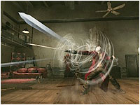 The game play is solid, just as it has in the past, and what is nice is that they took it a step further this time rather then just settling with what they had. What I mean is that in DMC3 they introduce the ability to pick a “style” for Dante. What the styles do is they allow Dante to pull off certain special moves, for instance in the Trickster style you can run up walls and its easier to dodge attacks or with the Gunslinger style you can shoot in two different directions with your two guns. You start the game with four styles and pick up two more as the game progresses. The style system adds a nice element of variety, since depending on how you play, you can pick a style the suits you or you can pick one that will be more helpful for that particular level.